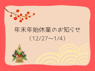 年末年始休業の期間を以下の通りとさせていただきます。